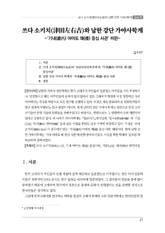 【주제어】 쓰다 소키치(津田左右吉), 기내 야마토 왜(倭) 중심사관, 기문(己汶), 대사(滯沙) 위치비정