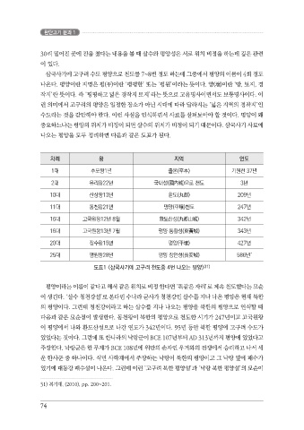 도표1 <삼국사기에 고구려 천도중 4번 나오는 평양> 31)