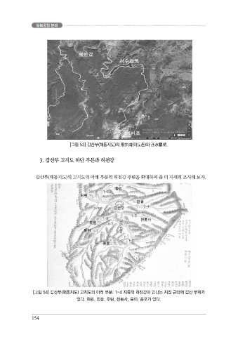 동북공정 분과 [그림 53] 갑산부(해동지도)의 飛非浦(이도촌)와 西水羅㯖. 3. 갑산부 고지도 하단 부분과 허천강 갑산부(해동지도)의 고지도의 아래 부분의 허천강 주변을 확대하여 좀 더 자세히 조사해 보자. [그림 54] 갑산부(해동지도) 고지도의 아래 부분: 1-4 지류와 허천강이 만나는 지점 근방에 갑산 부위가 있다. 허린, 진동, 호린, 천봉사, 웅이, 종포가 있다. 154