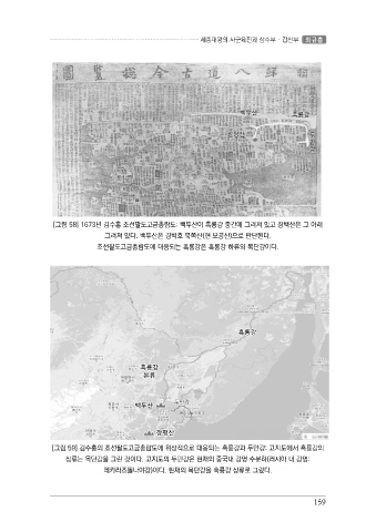 [그림 59] 김수홍의 조선팔도고금총람도에 위상적으로 대응되는 흑룡강과 두만강: 고지도에서 흑룡강의