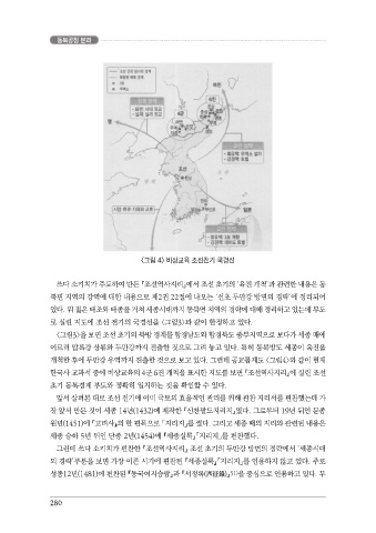 로 실린 지도에 조선 전기의 국경선을 <그림3>과 같이 한정하고 있다.
