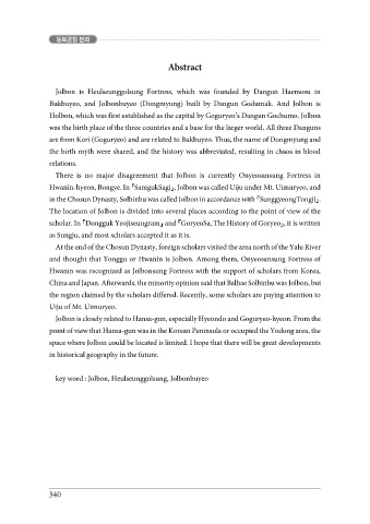 and thought that Tonggu or Hwanin is Jolbon. Among them, Onyeosansung Fortress of
