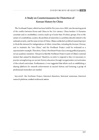 중국의 한국 역사 왜곡에 대한 대응방안 연구 김 솔