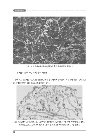강계부 고지도(해동지도)[그림 14] 상단 부분을 확대하여 살펴보자. 이 부분에 세종대왕의 사군