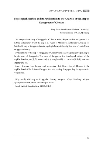 We analyse the old map of Kanggyebu of Chosun by topological method and geometrical