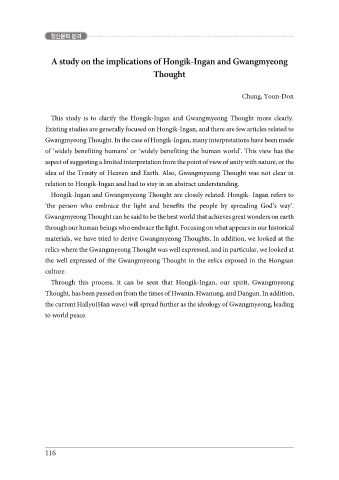 idea of the Trinity of Heaven and Earth. Also, Gwangmyeong Thought was not clear in