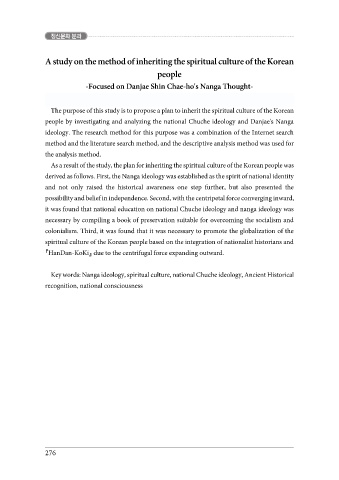 people by investigating and analyzing the national Chuche ideology and Danjae's Nanga