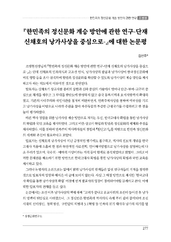 신채호의 낭가사상을 중심으로-』에 대한 논문평