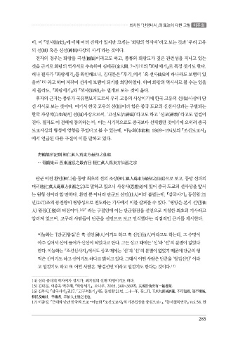 人) 왕검(王儉)의 터전이다. 16) ” 라는 구절인데 이는 단군왕검을 선인으로 지칭한 최초의 기사라고