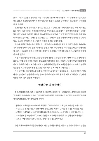 ‘인권사상’ 정신이 아닐까 싶다. ‘인간사랑’은 곧 동학의 창도정신이고 최시형과 손병희의 ‘천인사