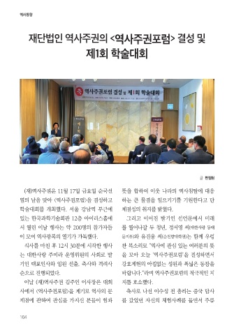 순으로 진행되었다. 바랍니다.”라며 역사주권포럼의 적극적인 지