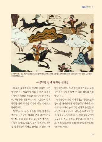 사냥은 승마술, 활쏘기, 무기 사용능력, 체력 고구려 임금님들 호칭은 광개토태왕릉비문의 ‘태왕’으로