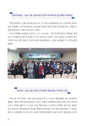 강릉지역본부는 12월 16일 토요일 오후 2시 강릉시 평생학습관 3층 소강당에서 역사특