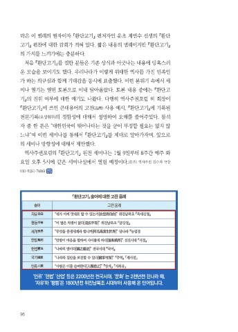 요일 오후 5시에 같은 세미나실에서 열릴 예정이다.(문의: 역사주권 김수지 국장