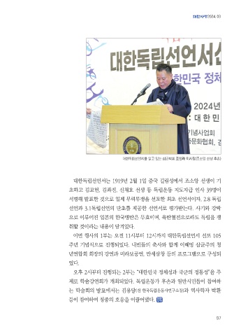 대한독립선언서를 읽고 있는 삼균학회 조인래 이사장(조소앙 선생 후손)