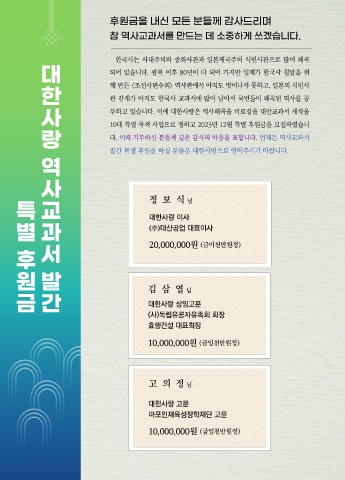 랑 다. 이때 기부하신 분들께 깊은 감사의 마음을 표합니다. 언제든 역사교과서