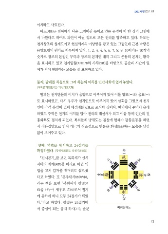 음양오행의 원리로 이루어져 있다. 1, 2, 3, 4, 5, 6, 7, 8, 9, 10이라는 10개의