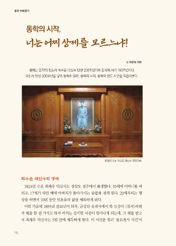 올해는 동학의 창도자 최수운 대신사 탄생 200주년이며 동시에 서거 160주년이다.