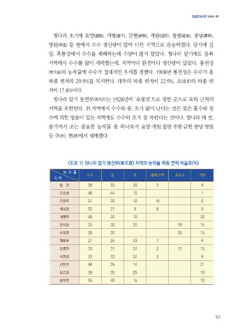 <도표 1> 청나라 말기 봉천부(奉天府) 지역의 농작물 파종 면적 비율표(%)