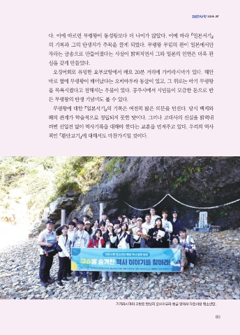 가카라시마의 무령왕 탄생지 오비야우라 동굴 앞에서 대한사랑 청소년단.
