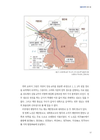 그림 1> 교과서에 실린 1차, 2차, 3차 강동 6주 침입한 경로
