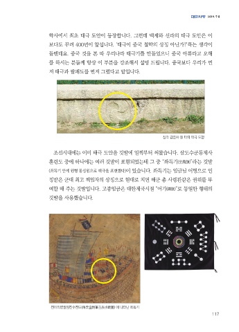 학사에서 최초 태극 도안이 등장합니다. 그런데 백제와 신라의 태극 도안은 이