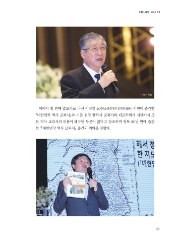 2024. 7·8 김성문 원장 이어서 첫 번째 발표자로 나선 이덕일 교수(순천향대학교대학원)는 이번에 출간한 『대한민국 역사 교과서』와 기존 검정 한국사 교과서와 비교하면서 지금까지 모 든 역사 교과서의 내용이 왜곡된 부분이 많다고 강조하며 광복 80년 만에 출간 한 ‘『대한민국 역사 교과서』 출간의 의의를 전했다. 이덕일 교수 133 월간대한사랑_8,9호_본문(인쇄).indd 133 2024-07-22 오후 1:51:51
