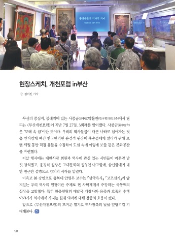 앞으로 <부산개천포럼>의 뜨거운 열기로 역사광복의 날을 앞당기길 기