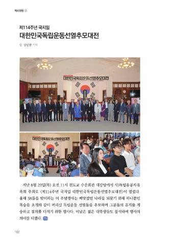 족회 주최로 <제114주년 국치일 대한민국독립운동선열추모대전>이 열렸다.