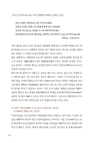 환웅 천황께서는 태백산에 오실 때 ‘천계에서 내려와 지상에 광명한 세상’을 열