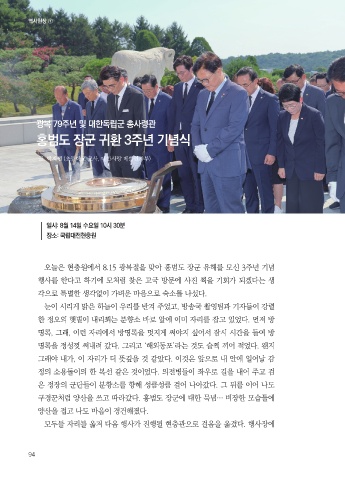 오늘은 현충원에서 8.15 광복절을 맞아 홍범도 장군 유해를 모신 3주년 기념