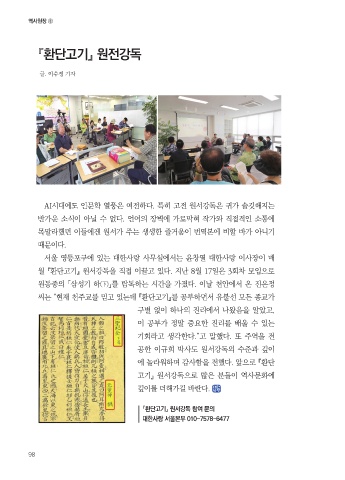 월 『환단고기』 원서강독을 직접 이끌고 있다. 지난 8월 17일은 3회차 모임으로
