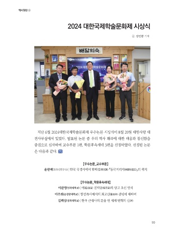 지난 6월 2024대한국제학술문화제 우수논문 시상식이 8월 20일 대한사랑 대