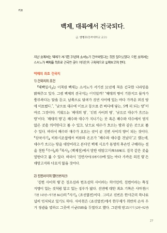 지난 호에서는 백제가 서기전 31년에 소서노가 건국하였다는 것을 알아보았다. 이번 호에서는