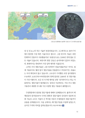 (마을)에서 고조선식(비파형)청동검과 함께 발견된 2,800년 전 청동거울