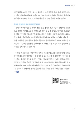 이 도입되었습니다. 또한, 청소년 회원들이 미션 활동을 통해 역사 공부뿐 아니