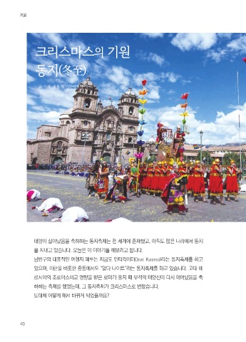 남반구의 대표적인 여행지 페루는 지금도 인티라이미(Inti Raymi)라는 동지축제를 하고
