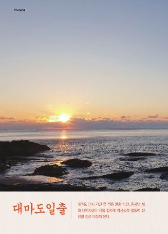 포토에세이 대마도일출 대마도 답사 기간 중 찍은 일출 사진. 을사년 새 해 대한사랑이 더욱 힘차게 역사광복 활동에 전 진할 것을 다짐해 본다.