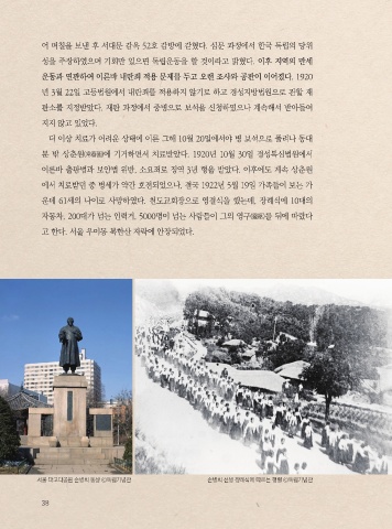 서울 파고다공원 손병희 동상 ⓒ독립기념관 손병희 선생 장례식에 따르는 행렬 ⓒ독립기념관