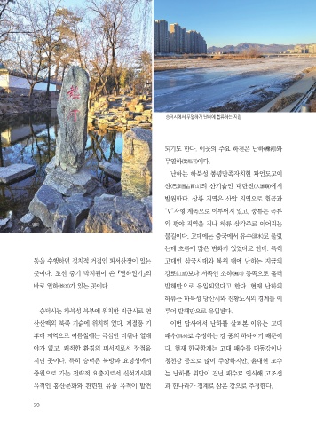 곳이다. 조선 중기 박지원이 쓴 『열하일기』의 강로(江路)보다 서쪽인 소하(溯河) 동쪽으로 흘러