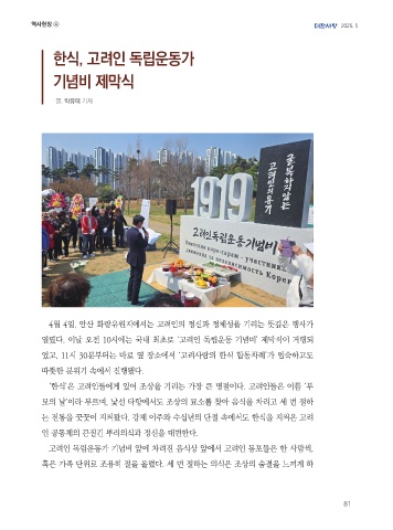 열렸다. 이날 오전 10시에는 국내 최초로 ‘고려인 독립운동 기념비’ 제막식이 거행되