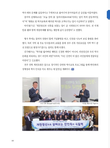 김기태(75)는 “역사를 잃어버린 해방은 진정한 해방이 아니며, 개천정신과 우리 역사
