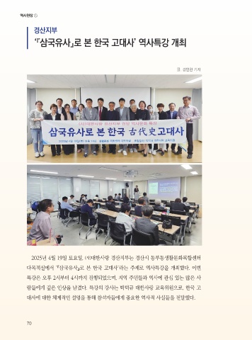 다목적실에서 ‘『삼국유사』로 본 한국 고대사’라는 주제로 역사특강을 개최했다. 이번