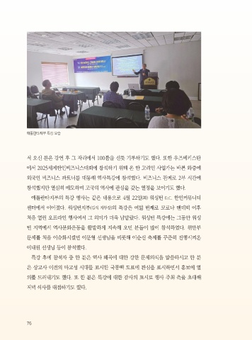 센터에서 이어졌다. 워싱턴지부(김석 지부장)의 특강은 여덟 번째로 코로나 팬데믹 이후