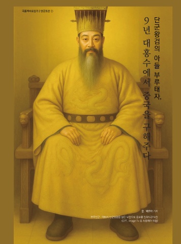 국통맥바로잡기 | 단군조선 ② 9 단 년 군 왕 대 검 홍 의 수 아 들 에 부 서 루 태 중 자, 국 을 구 해 주 다 글. 박유태 기자 부루단군 ; 아버지 단군왕검을 닮은 모습으로 용포를 입혀드린 모습 (GPT, Image Fx 등 사용하여 복원) 17