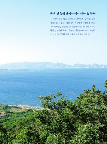 진시황이 말을 타고 올랐다는 낭야대의 ‘낭야’는 원래 단군조선 시기 2대 번한 왕의 이름에서 유래했다. (『환단 고기·태백일사』「삼한관경본기·번한세가 상」) 저 멀리 보이는 돌산은 진달래 축제로 유명한 대주산(大珠山)으로 하늘에 서 보면 큰 진주와 같다고 해서 이름 붙여졌다 한다.