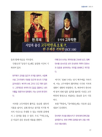 몰아내었다. 북부여 4세 고우루 단군 때의 일이 며, 이는 고두막한이 활약하던 시기와 지리적