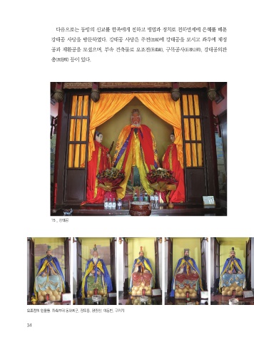 다음으로는 동방의 신교를 한족에게 전하고 병법과 정치로 천하만세에 은혜를 베푼 강태공 사당을 방문하였다. 강태공 사당은 주전(主殿)에 강태공을 모시고 좌우에 제정 공과 제환공을 모셨으며, 부속 건축물로 오조전(五祖殿), 구목공사(丘穆公祠), 강태공의관 총(衣冠塚) 등이 있다. ⑮ 15 _ 강태공 오조전의 인물들. 좌측부터 동화제군, 장도릉, 왕중양, 여동빈, 구처기 34