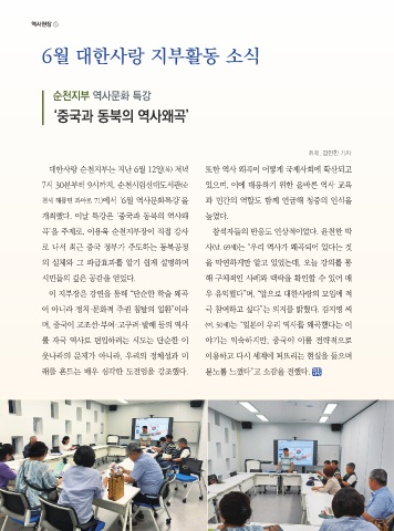 천시 해룡면 좌야로 71)에서 ‘6월 역사문화특강’을 과 민간의 역할도 함께 언급해 청중의 인식을