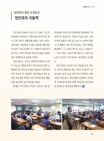 역사 특강에 귀 기울였다. 참석자들은 역사 교 석자들의 높은 관심 속에 마무리되었다. 대한